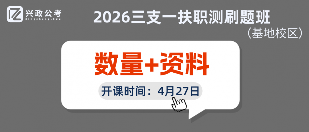 计算速度跟不上、资料找数找不到、公式混淆频频出错?备考中,数量关系 + 资料分析板块正确率忽高忽低,成了提分路上的 “拦路虎”?4 月 27 日,兴政公考 2026 三支一扶职测刷题班(基地校区)重磅开课,带你精准适配三支一扶命题规律,一举突破数量关系 + 资料分析备考瓶颈,助力高效冲刺上岸!